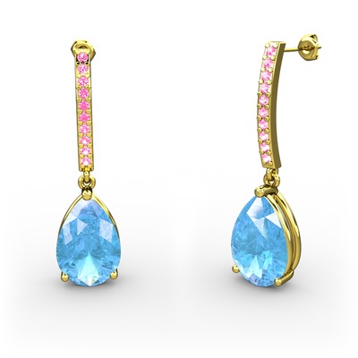 Akuamarin ve pembe kuvars 18 ayar altın küpe