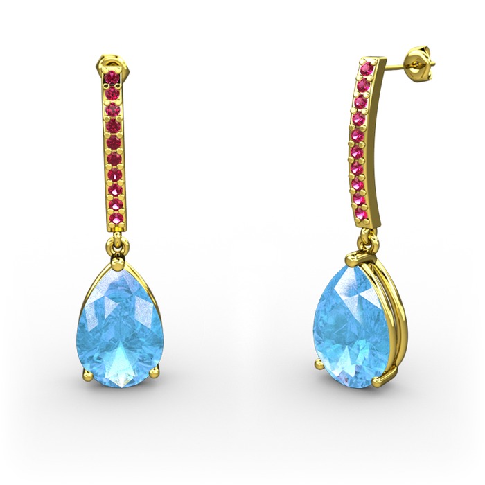 Akuamarin ve rodolit garnet 925 ayar altın kaplama gümüş küpe