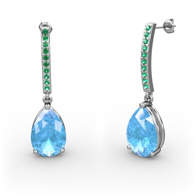 Akuamarin ve yeşil kuvars 8 ayar beyaz altın küpe