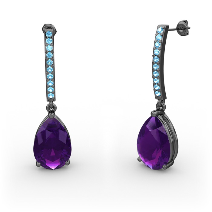 Ametist ve akuamarin 925 ayar siyah rodyum kaplama gümüş küpe