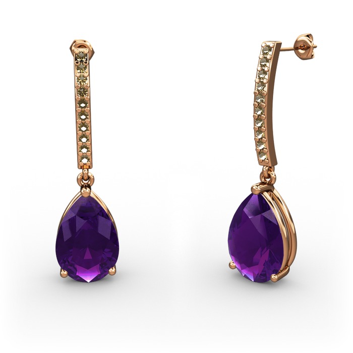 Ametist ve dumanlı kuvars 925 ayar rose altın kaplama gümüş küpe