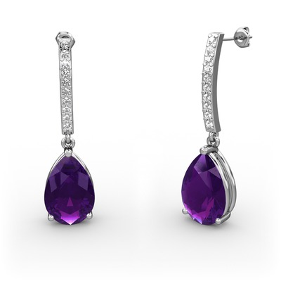 Ametist ve pırlanta 8 ayar beyaz altın küpe (0.22 karat)