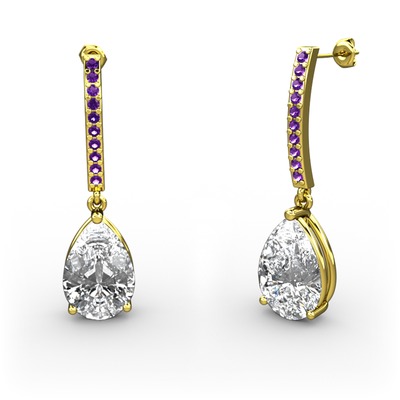 Beyaz zirkon ve ametist 8 ayar altın küpe