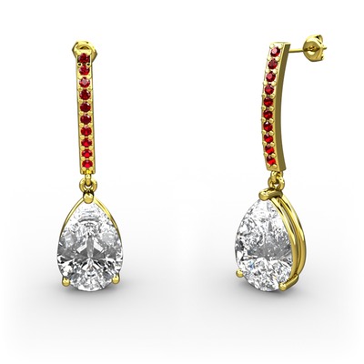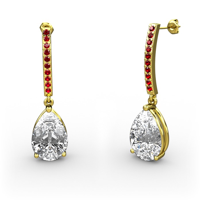 Beyaz zirkon ve garnet 18 ayar altın küpe