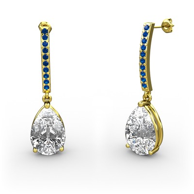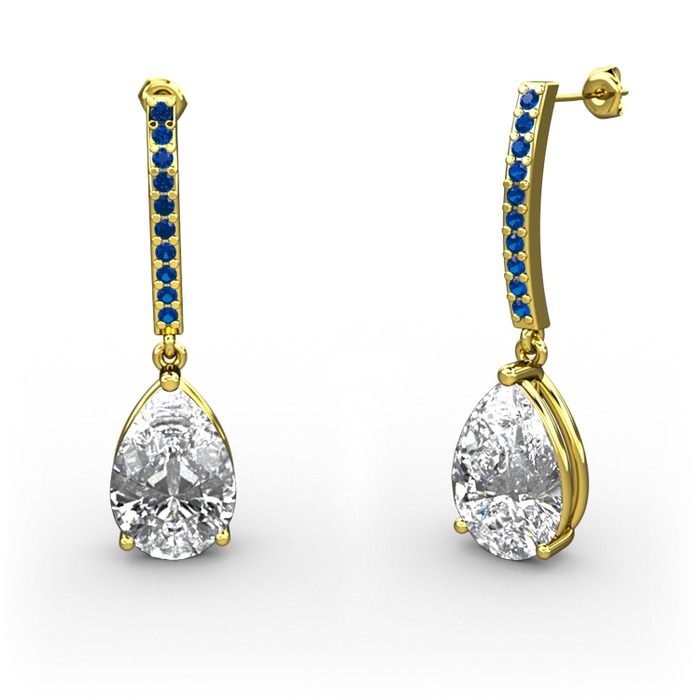 Beyaz zirkon ve lab safir 18 ayar altın küpe