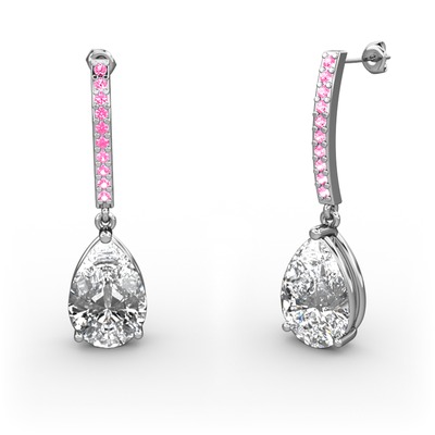Beyaz zirkon ve pembe kuvars 18 ayar beyaz altın küpe