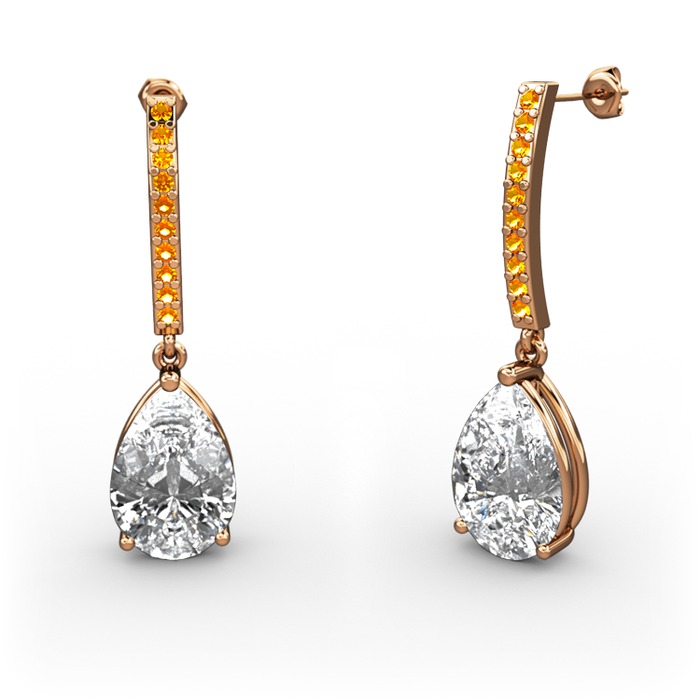 Beyaz zirkon ve sitrin 925 ayar rose altın kaplama gümüş küpe