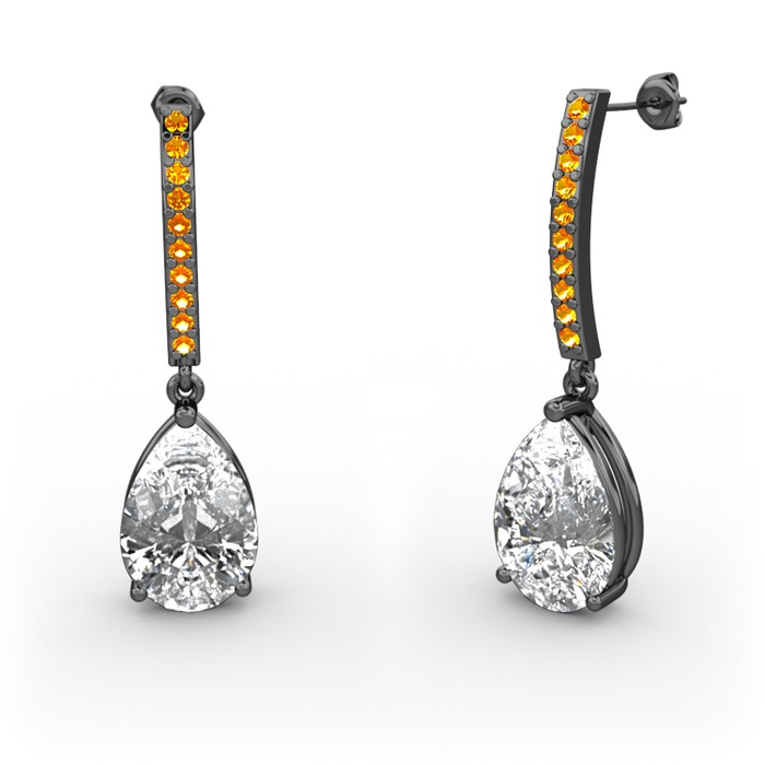 Beyaz zirkon ve sitrin 925 ayar siyah rodyum kaplama gümüş küpe
