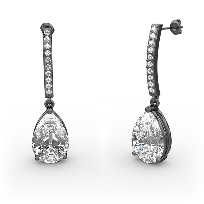 Beyaz zirkon 925 ayar siyah rodyum kaplama gümüş küpe