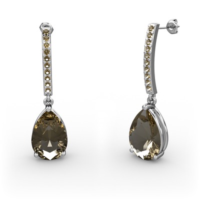 Dumanlı kuvars 8 ayar beyaz altın küpe