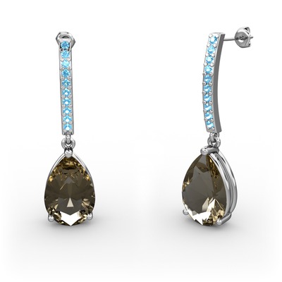 Dumanlı kuvars ve akuamarin 925 ayar gümüş küpe