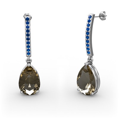 Dumanlı kuvars ve lab safir 8 ayar beyaz altın küpe