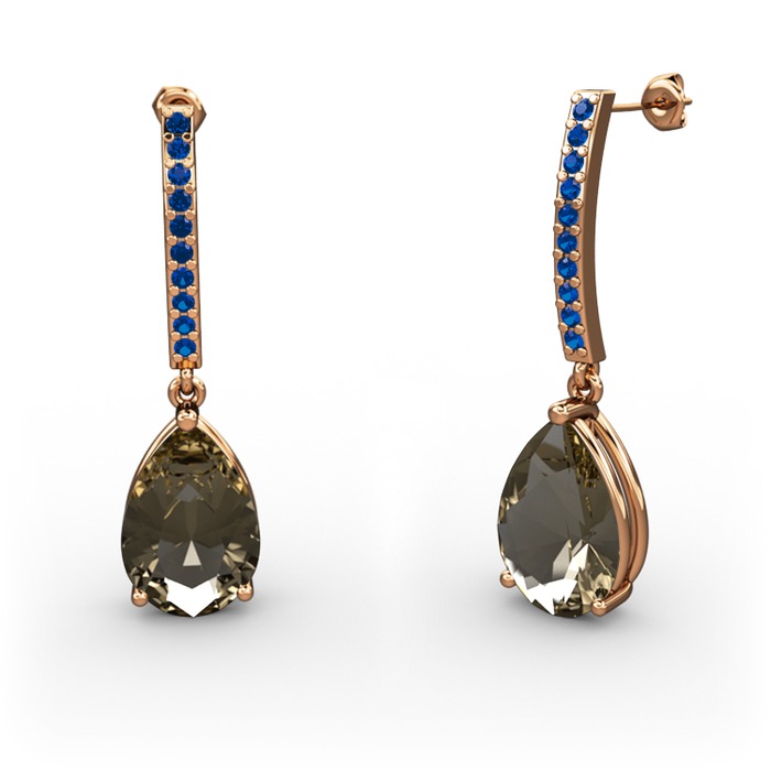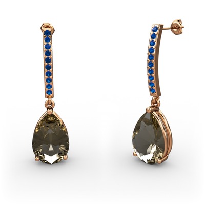 Dumanlı kuvars ve lab safir 925 ayar rose altın kaplama gümüş küpe