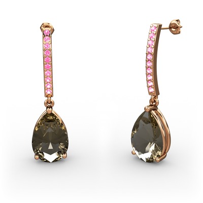 Dumanlı kuvars ve pembe kuvars 925 ayar rose altın kaplama gümüş küpe