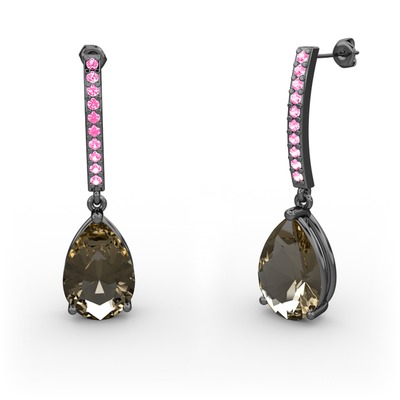 Dumanlı kuvars ve pembe kuvars 925 ayar siyah rodyum kaplama gümüş küpe