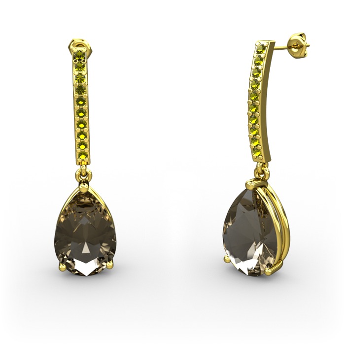 Dumanlı kuvars ve peridot 8 ayar altın küpe