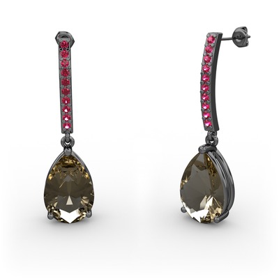 Dumanlı kuvars ve rodolit garnet 925 ayar siyah rodyum kaplama gümüş küpe