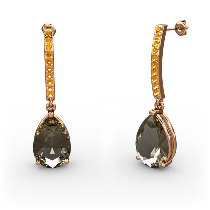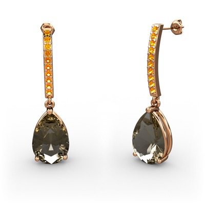 Dumanlı kuvars ve sitrin 925 ayar rose altın kaplama gümüş küpe