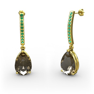 Dumanlı kuvars ve yeşil kuvars 18 ayar altın küpe