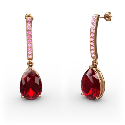 Garnet ve pembe kuvars 14 ayar rose altın küpe