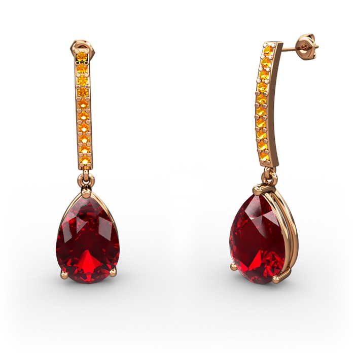 Garnet ve sitrin 18 ayar rose altın küpe