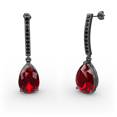Garnet ve siyah zirkon 925 ayar siyah rodyum kaplama gümüş küpe