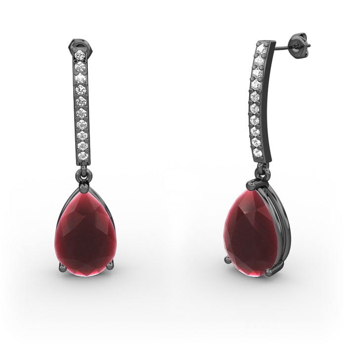 Kök yakut ve beyaz zirkon 925 ayar siyah rodyum kaplama gümüş küpe