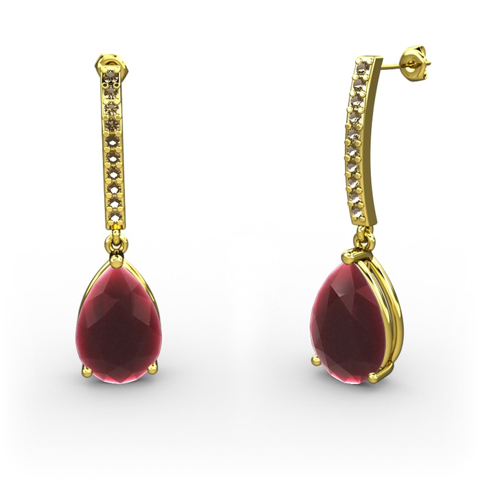 Kök yakut ve dumanlı kuvars 8 ayar altın küpe
