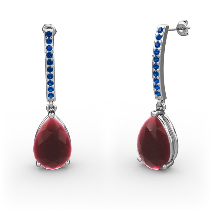 Kök yakut ve lab safir 18 ayar beyaz altın küpe