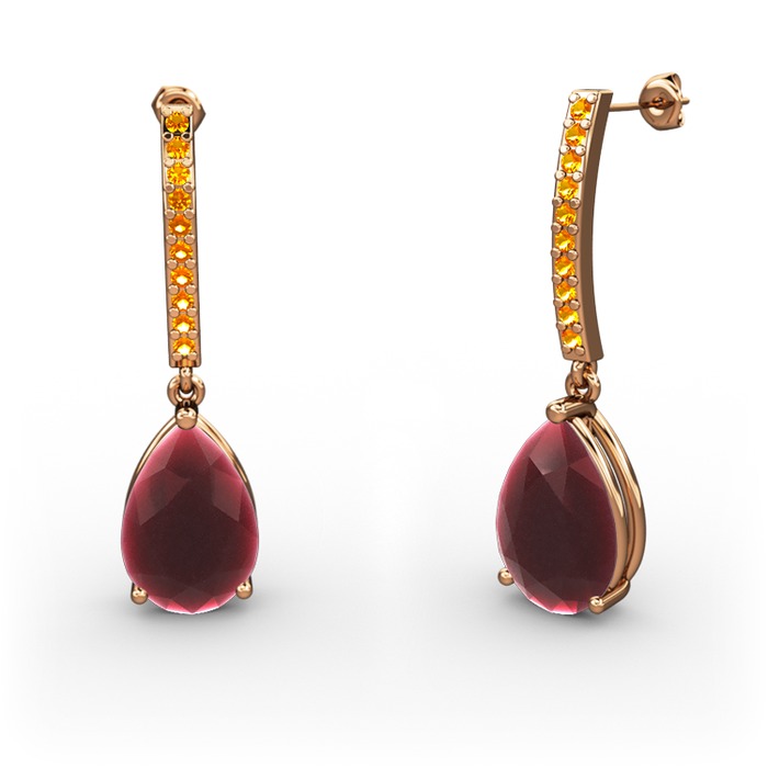 Kök yakut ve sitrin 8 ayar rose altın küpe