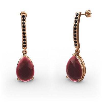 Kök yakut ve siyah zirkon 925 ayar rose altın kaplama gümüş küpe