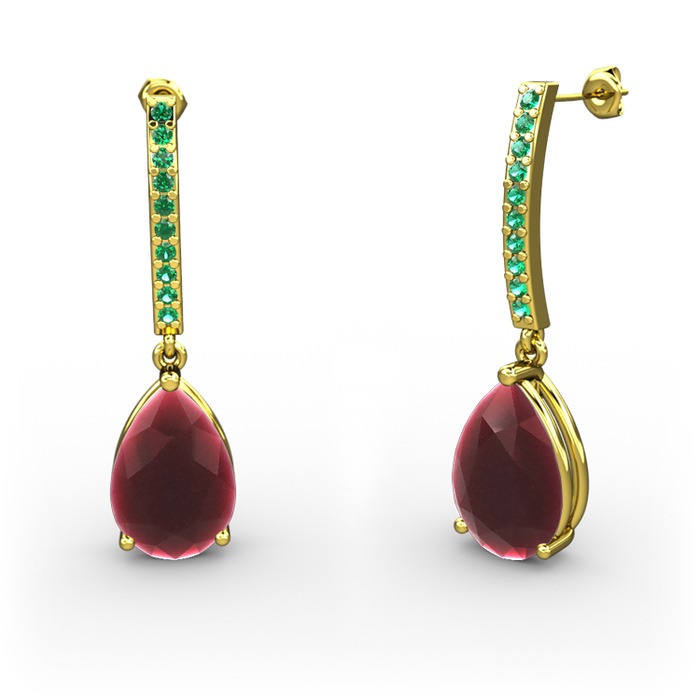 Kök yakut ve yeşil kuvars 18 ayar altın küpe