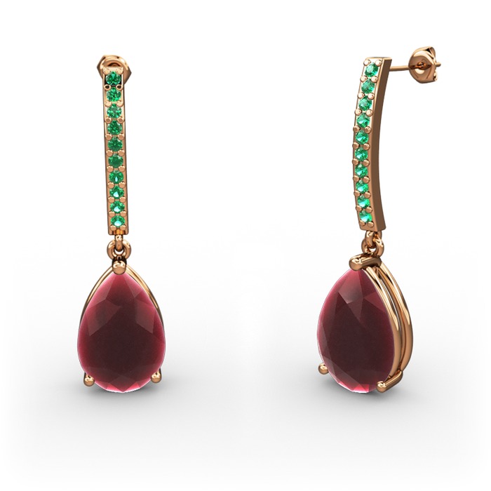 Kök yakut ve yeşil kuvars 18 ayar rose altın küpe