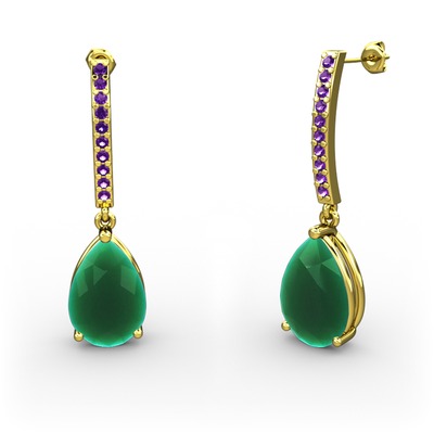 Kök zümrüt ve ametist 18 ayar altın küpe