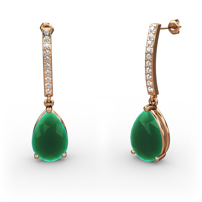 Kök zümrüt ve beyaz zirkon 14 ayar rose altın küpe