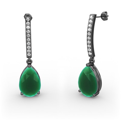Kök zümrüt ve beyaz zirkon 925 ayar siyah rodyum kaplama gümüş küpe