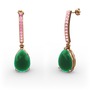 Kök zümrüt ve pembe kuvars 925 ayar rose altın kaplama gümüş küpe