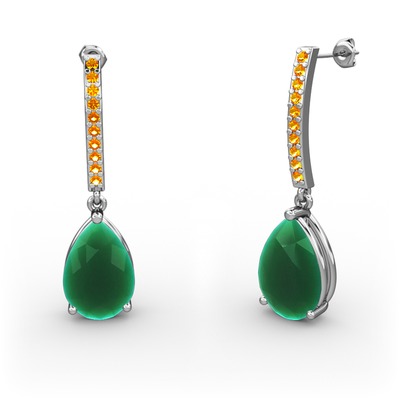 Kök zümrüt ve sitrin 14 ayar beyaz altın küpe