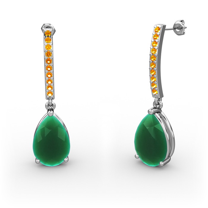 Kök zümrüt ve sitrin 18 ayar beyaz altın küpe