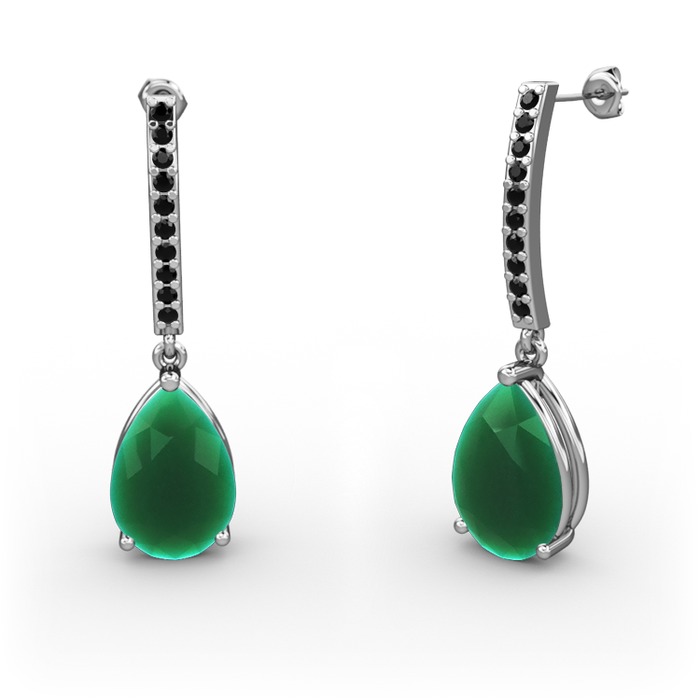 Kök zümrüt ve siyah zirkon 18 ayar beyaz altın küpe