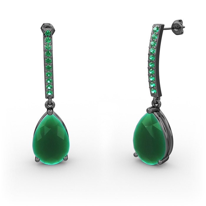 Kök zümrüt ve yeşil kuvars 925 ayar siyah rodyum kaplama gümüş küpe