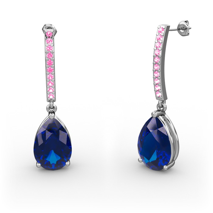 Lab safir ve pembe kuvars 925 ayar gümüş küpe