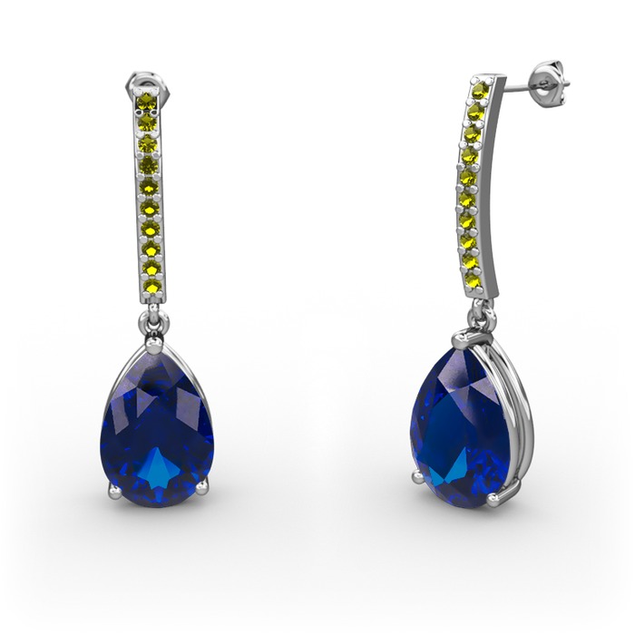 Lab safir ve peridot 14 ayar beyaz altın küpe