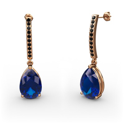Lab safir ve siyah zirkon 18 ayar rose altın küpe