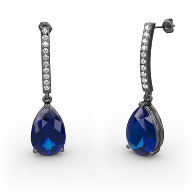 Lab safir ve swarovski 925 ayar siyah rodyum kaplama gümüş küpe