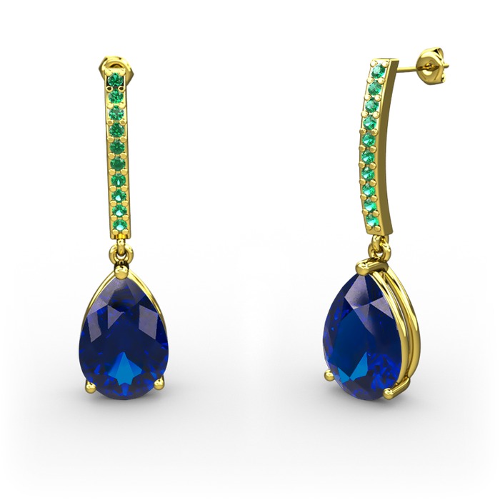 Lab safir ve yeşil kuvars 14 ayar altın küpe