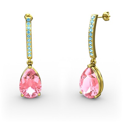 Pembe kuvars ve akuamarin 925 ayar altın kaplama gümüş küpe