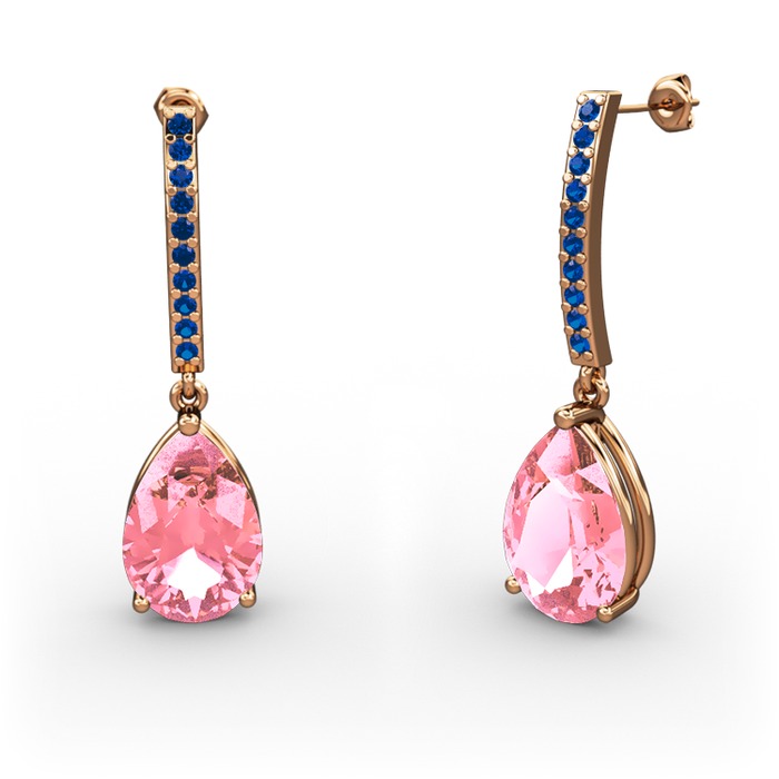 Pembe kuvars ve lab safir 8 ayar rose altın küpe