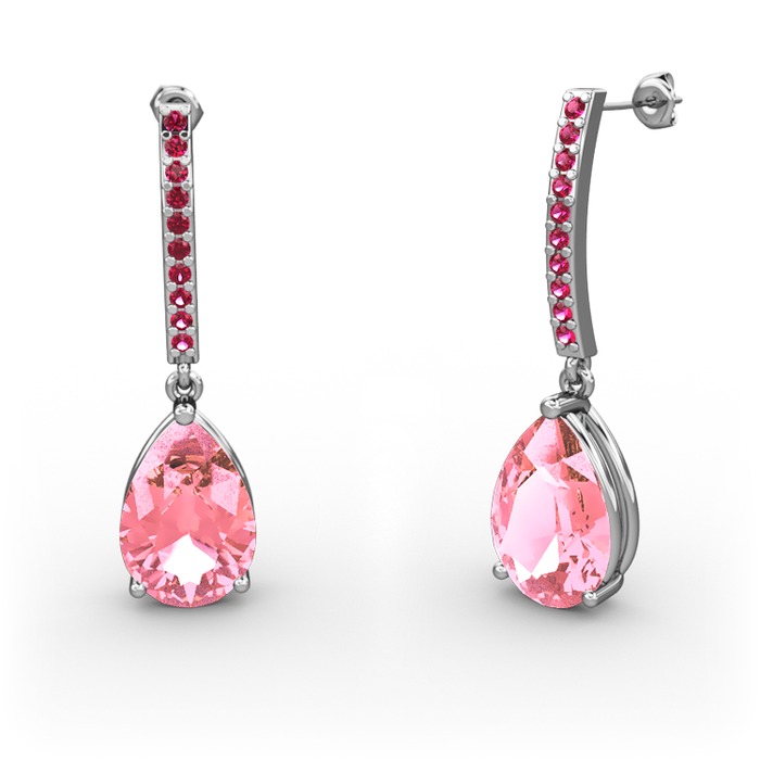 Pembe kuvars ve rodolit garnet 14 ayar beyaz altın küpe