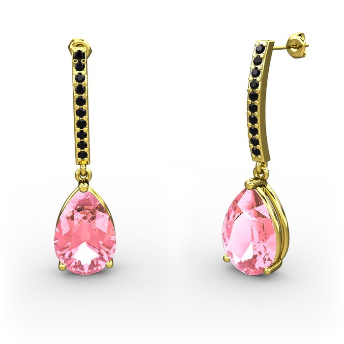 Pembe kuvars ve siyah zirkon 18 ayar altın küpe